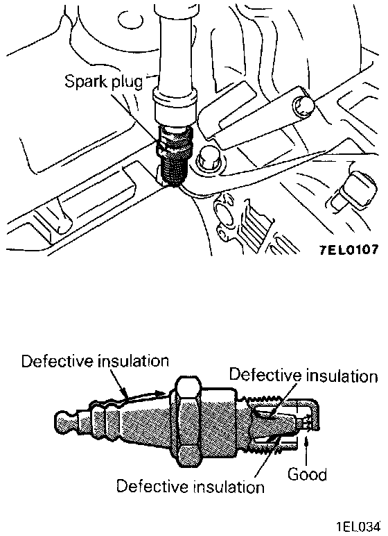 2. Ground the spark plug outer electrode (body), and crank the engine. Check to be sure that there is an electrical discharge between the electrodes at this time.