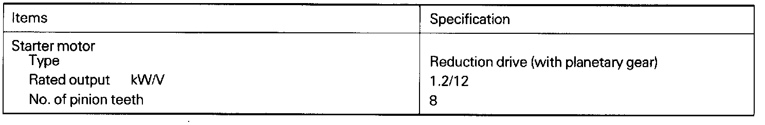 Starter Motor General Specifications: