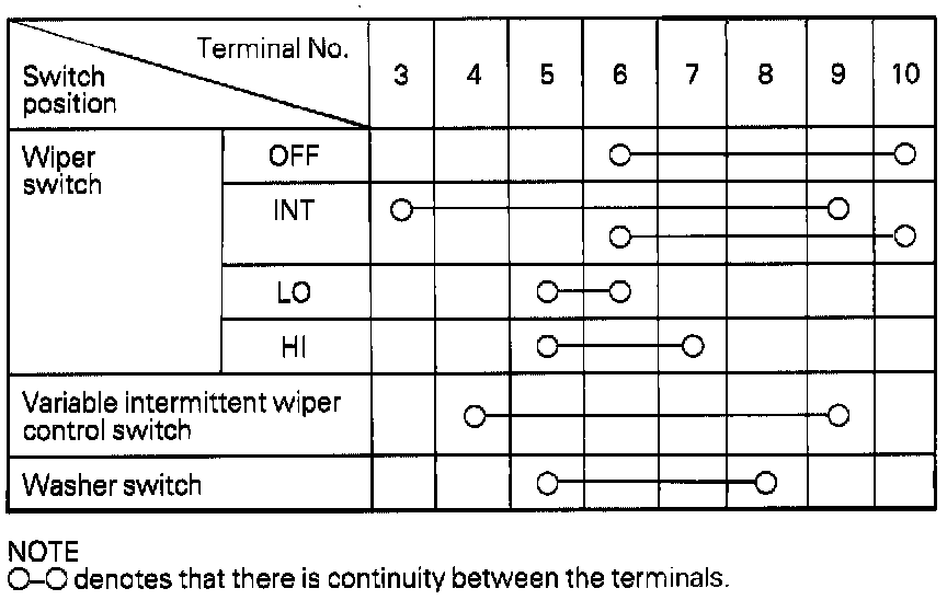 Wiper And Washer Switch Continuity Table: