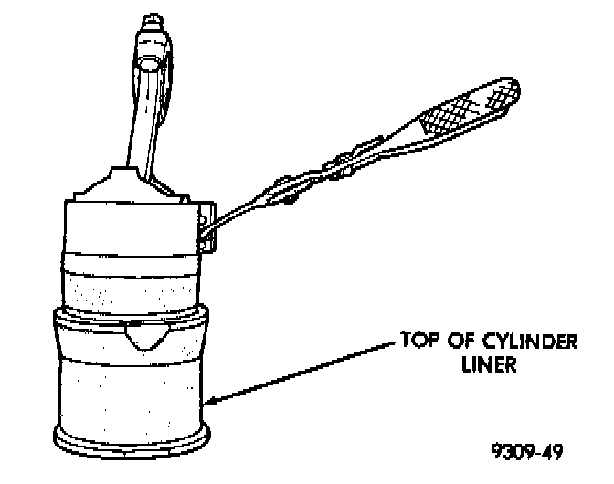 4. Install piston assembly from the bottom of liner. Tap the piston down in cylinder liner, using a hammer handle.