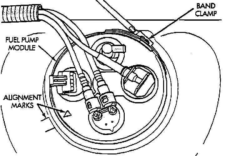 CAUTION: DO NOT over tighten fuel pump band clamp.