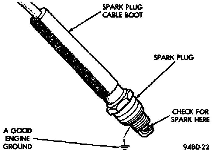 Remove the cable from number 2 spark plug. Insert a clean spark plug into the spark plug boot, and ground plug to the engine Fig. 1.