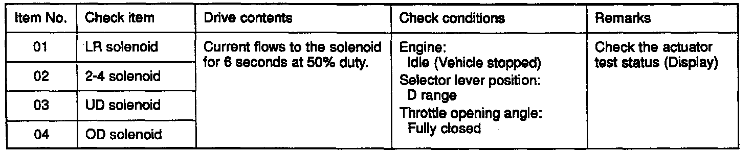 Actuator Test Reference Table
