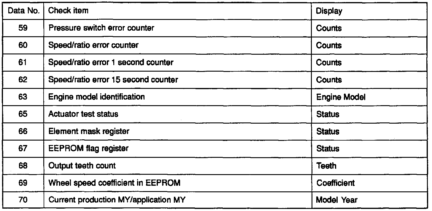 Service Data Reference Table