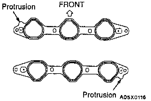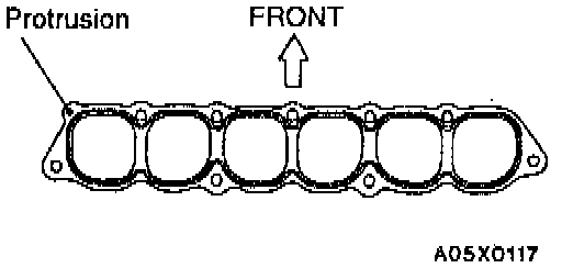 2. Install the intake manifold gasket with protrusions in the position illustrated.