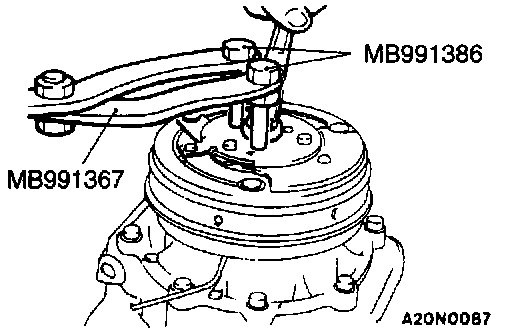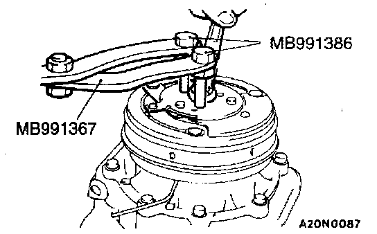 1. Install the special tool to the compressor crankshaft.