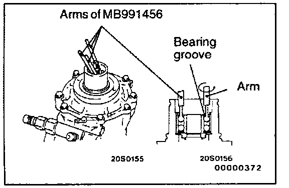 2. Insert the arms (3) of the special tool into the bearing groove at regular intervals.