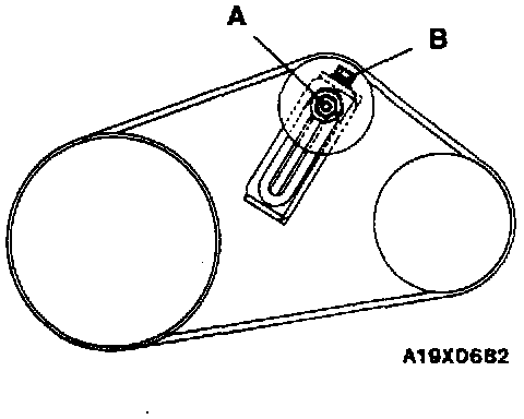 1. Loosen nut "A" for holding the tension pulley.