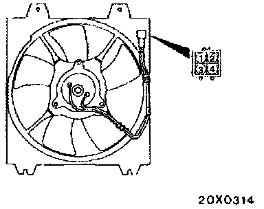 1. Check that the condenser fan motor operates when battery voltage (+) is applied to terminal 1 and terminal 4 is grounded (-).