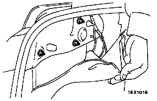 Remove the clip, pull the trunk rear trim into the passenger compartment as shown in the figure, and remove the mounting nuts.
