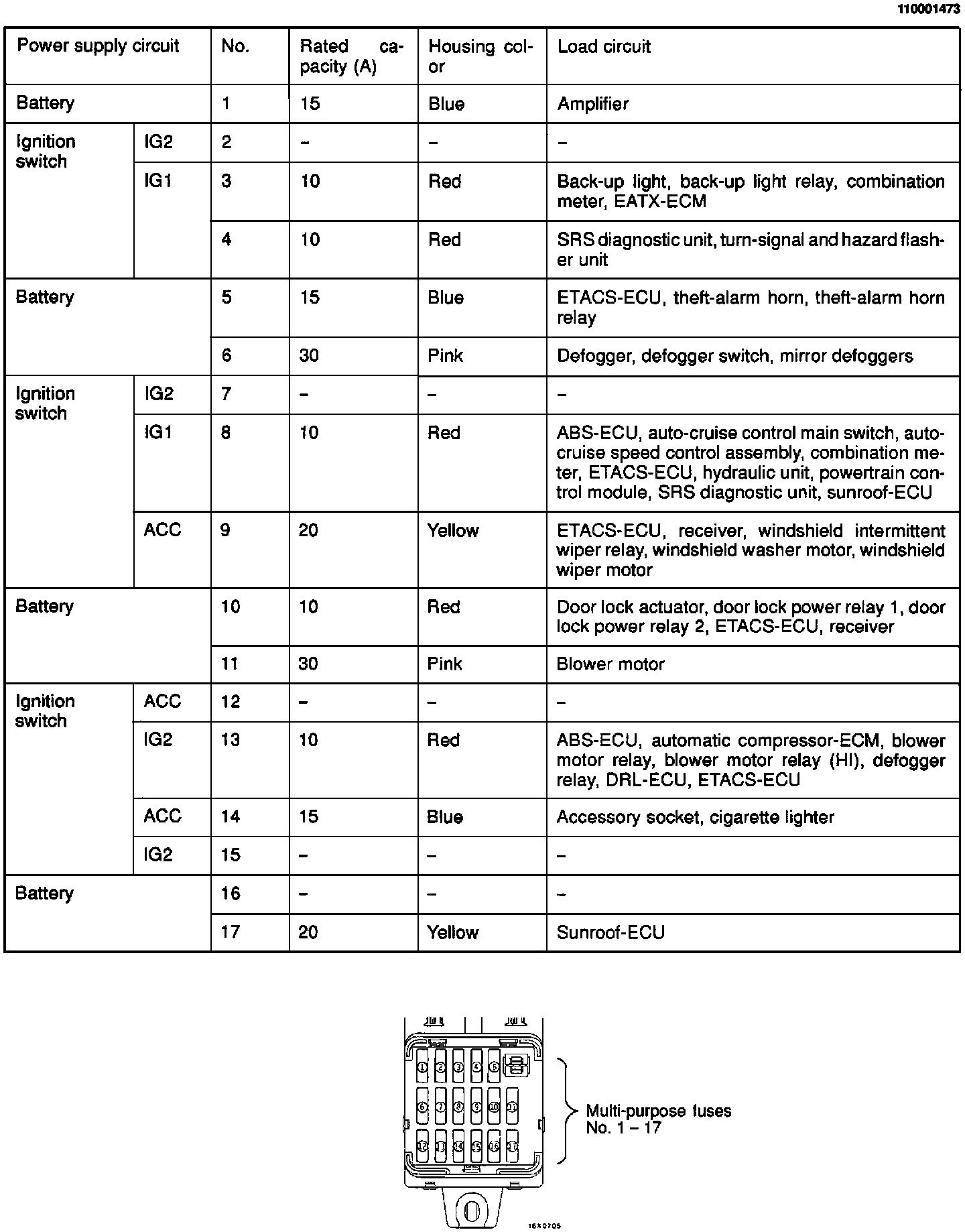 Multi-Purpose Fuse (In Junction Block):