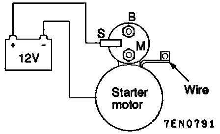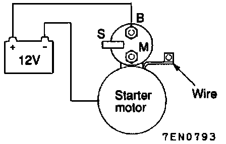 3. If pinion remains out, everything is in order. If pinion moves in, hold-in circuit is open. Replace the starter assembly.