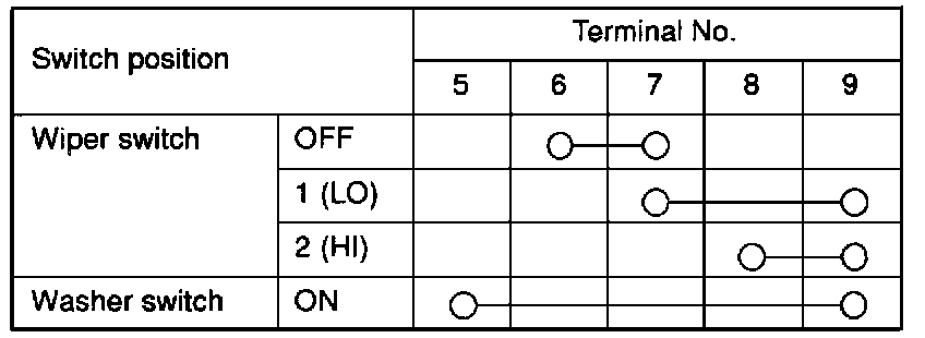Wiper And Washer Switch Continuity Check Table: