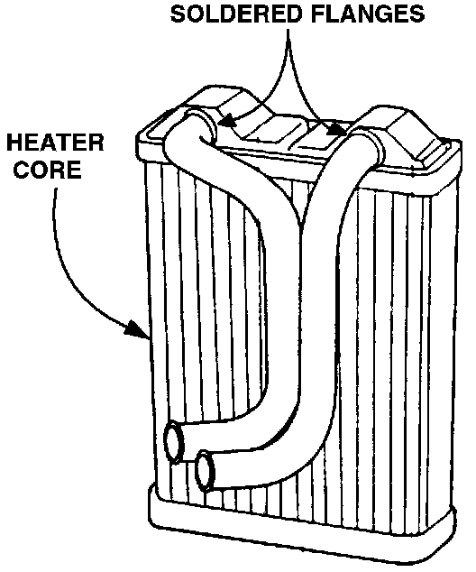 1. Heater Hose Flanges - The tubing flanges to which the heater hoses are connected are soldered onto the heater core. When removing the hoses from the heater core excessive pressure may crack the solder joint, resulting in a leak.