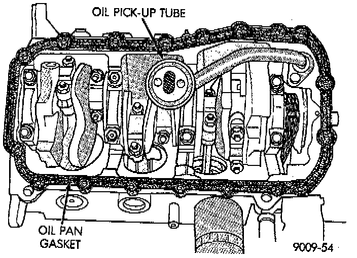 Clean all gasket material from mounting surfaces of pan and block.