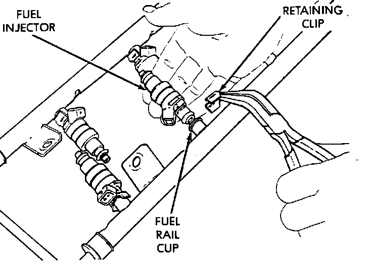 4. Remove the fuel injector lock clip, and slide the injector straight out of the fuel rail cup.