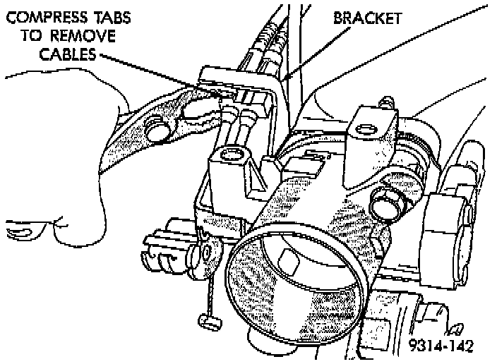 17. Hold throttle body lever in wide-open position. Install throttle and speed control cables.