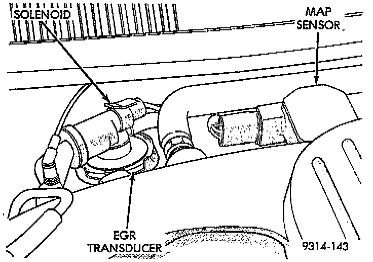 6. Disconnect electrical connectors from solenoid on EGR valve transducer and MAP sensor Fig. 16.