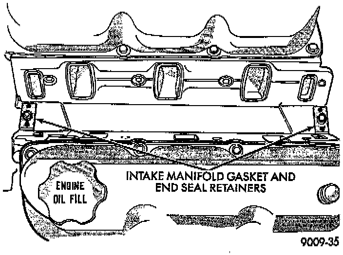 9. Remove cover from intake manifold. Place plenum with new gasket on intake manifold. Loosely install mounting bolts.