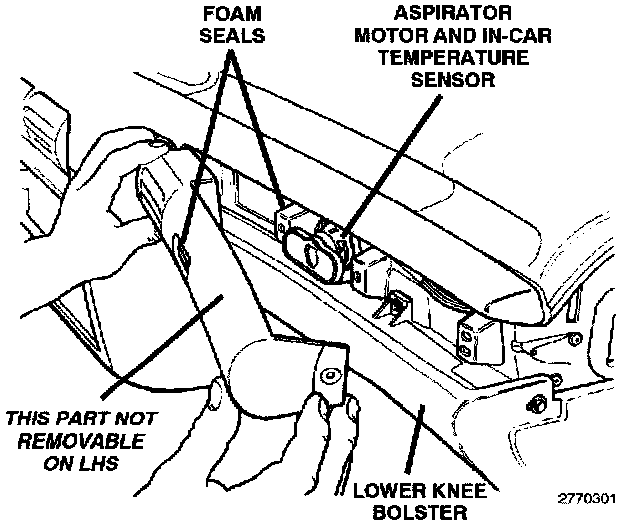 The In-Car temperature sensor is located behind the name plate on the right side of the instrument panel.