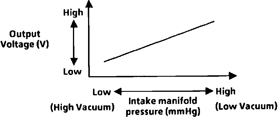 Output voltages between 0.5 and 1.5 volts indicate a high vacuum (low pressure) situation, such as idle or deceleration.