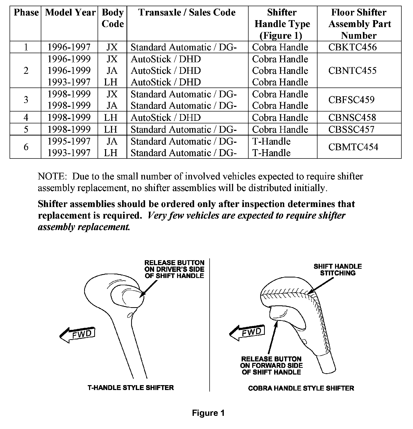 If inspection determines that shifter assembly replacement is required and the vehicle must be held overnight, dealers should attempt to minimize customer inconvenience by placing the owner in a loaner vehicle.