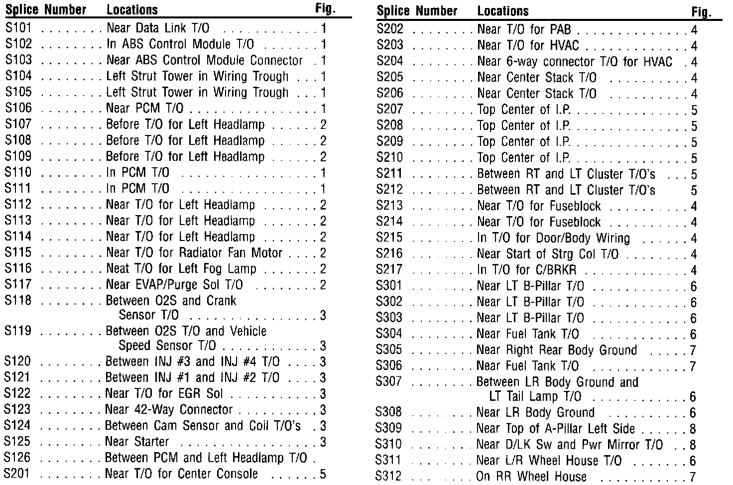 Splice Location Diagram Index: