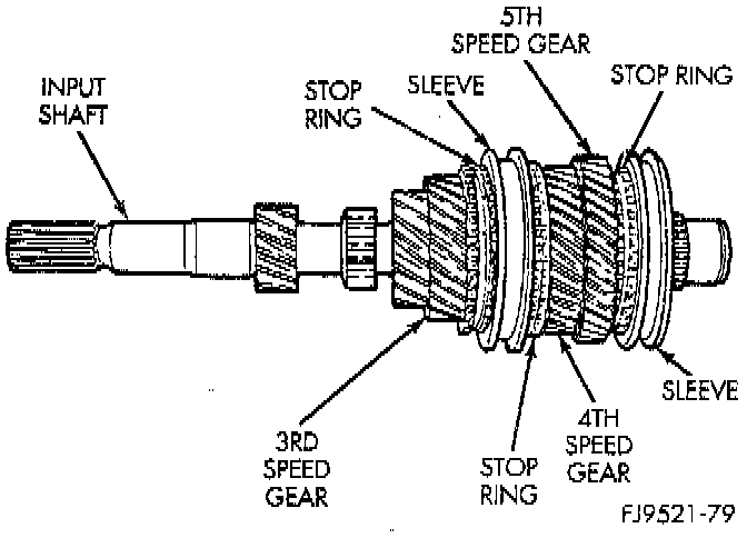 The input shaft incorporates the 3rd, 4th, and 5th speed gears and synchronizers on the assembly.