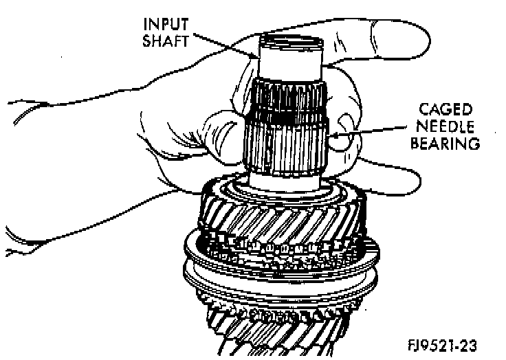 12. Inspect the input shaft for worn or damaged bearing races or chipped gear teeth. Replace as necessary.