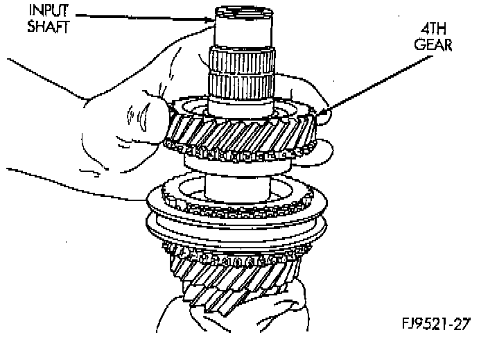8. Remove 4th gear caged needle bearing. Check the caged needle bearing for a broken retention spring.