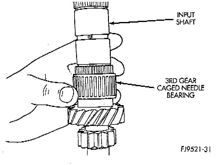 11. Remove 3rd gear caged needle bearing. Check the caged needle bearing for a broken retention spring.