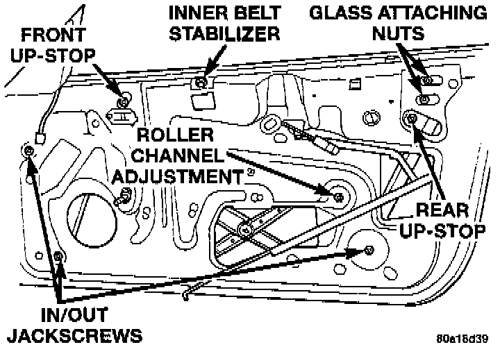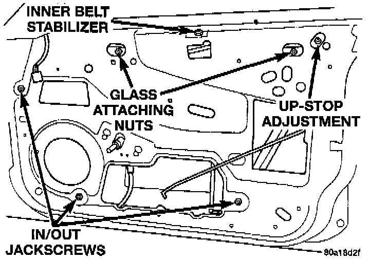 NOTE: The top edge of the door glass should be beneath the lip of the weatherstrip