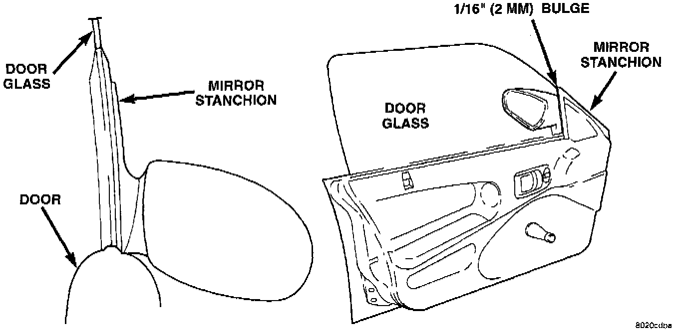 4. Raise glass to top of travel and adjust glass to fit the B-pillar seal. Glass to B-pillar applique gap should be approximately 13 mm (1/2 inch).