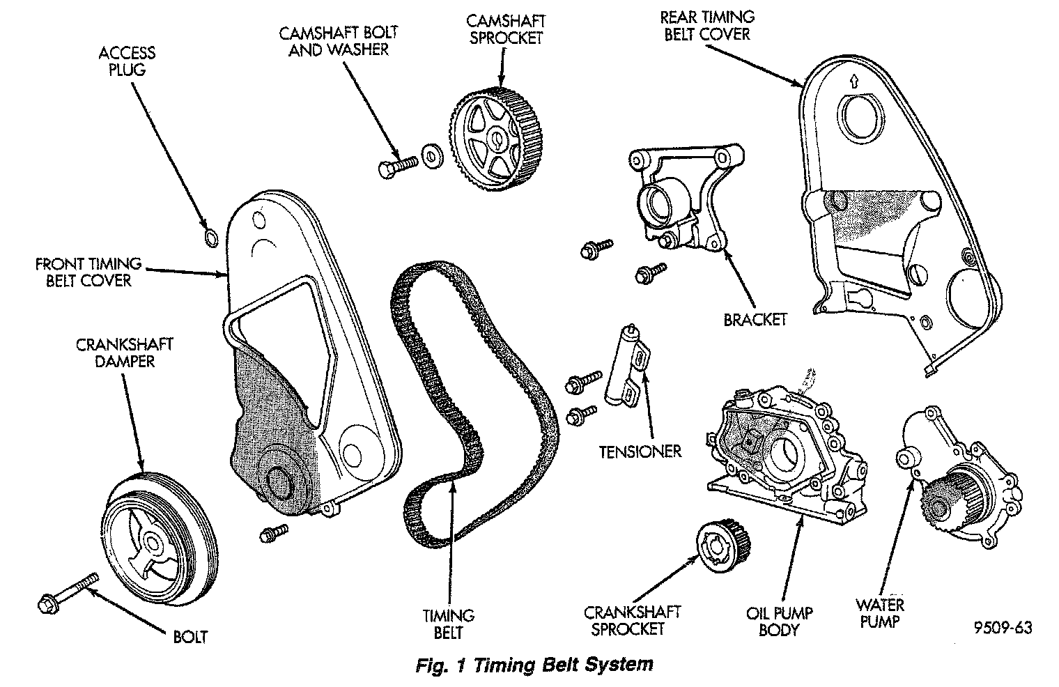 8. Loosen timing belt tensioner screws and remove timing belt and tensioner.