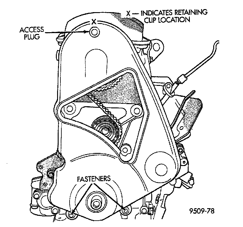 Caution: Align camshaft and crankshaft timing marks before removing the timing belt.