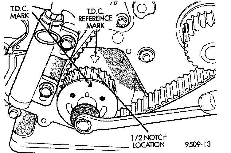 6. Move crankshaft to 1/2 mark before TDC for belt installation.
