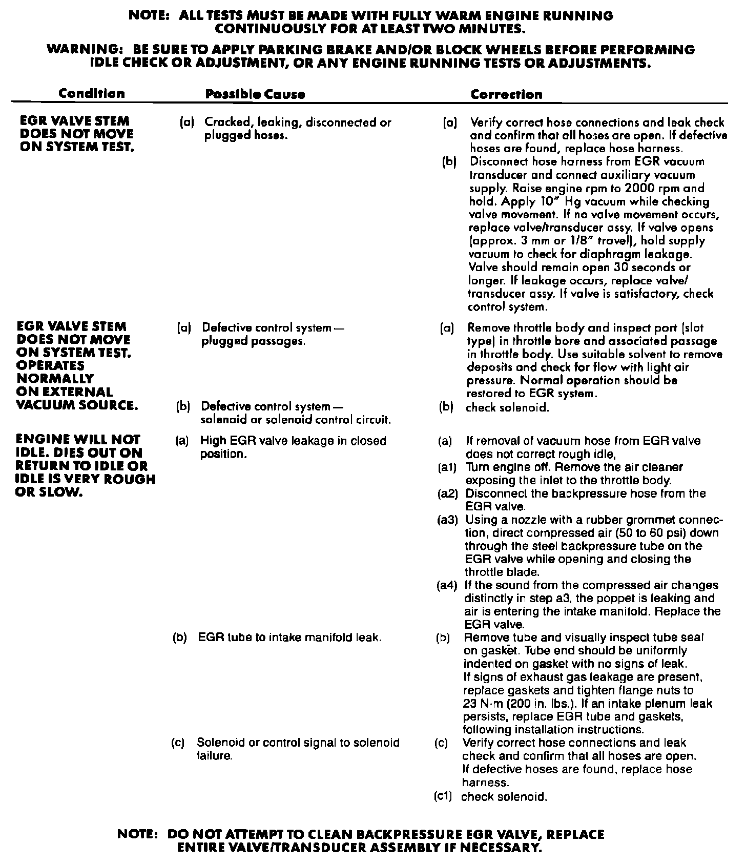 EGR System Diagnostic Charts