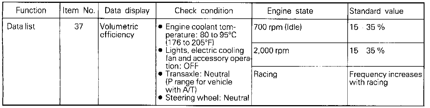 NOTE: When the vehicle is new [within initial operation of about 500 km (300 miles)], the volume air flow sensor output frequency may be about 10% higher.