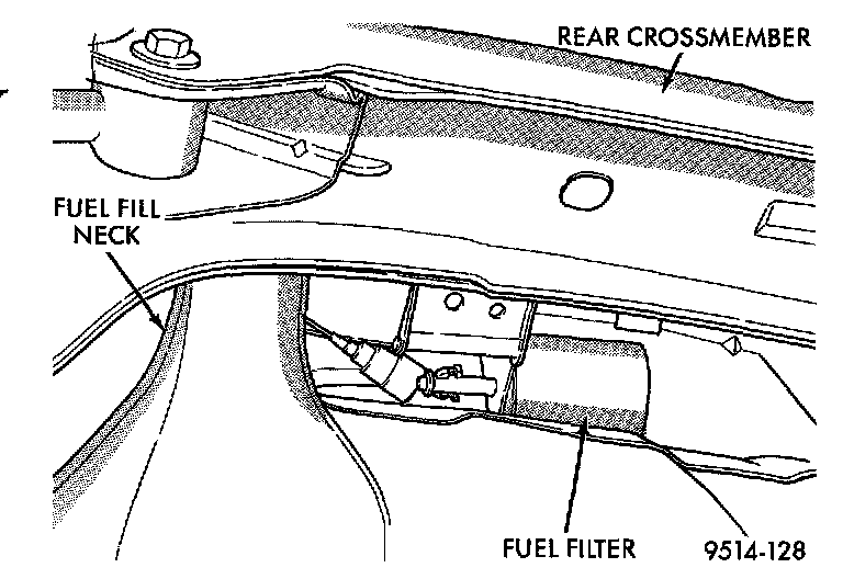 The fuel filter mounts to the frame above the rear of the fuel tank. The inlet and outlet tubes are permanently attached to the filter.