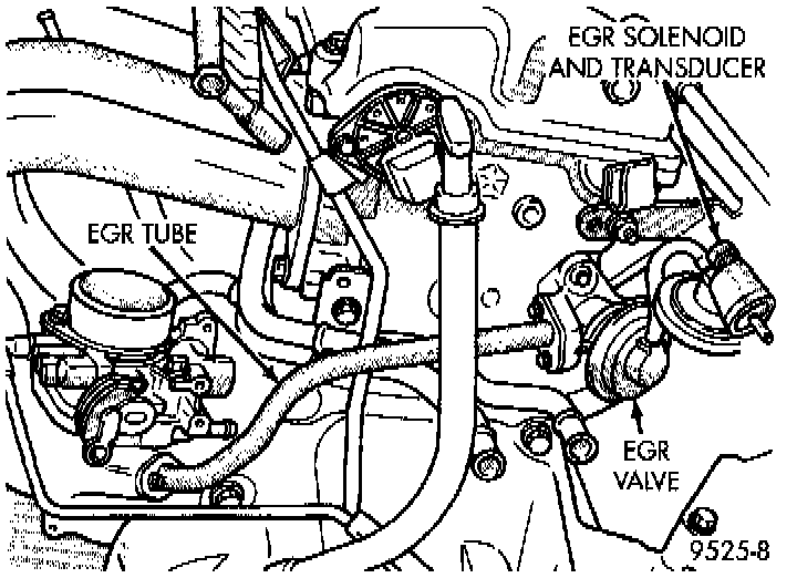NOTE: The EGR valve and transducer/solenoid attach to the rear of the cylinder head (Fig. 1).