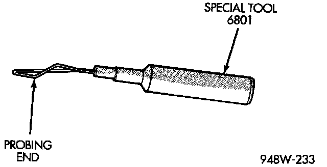 ^ Probing Tools - These tools are used for probing terminals in connectors. Select the proper size tool from Special Tool Package 6807, and insert it into the terminal being tested. Use the other end of the tool to insert the meter probe.