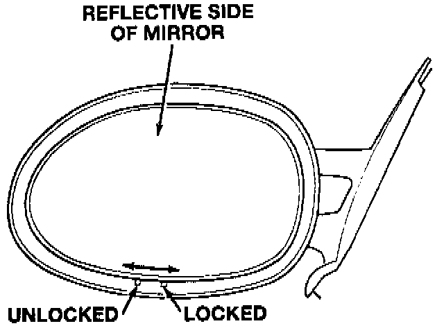 1. To remove glass from heated rear view mirror, push lock tab to outside of glass. It will require a fiber stick (trim stick) and a good deal of force.