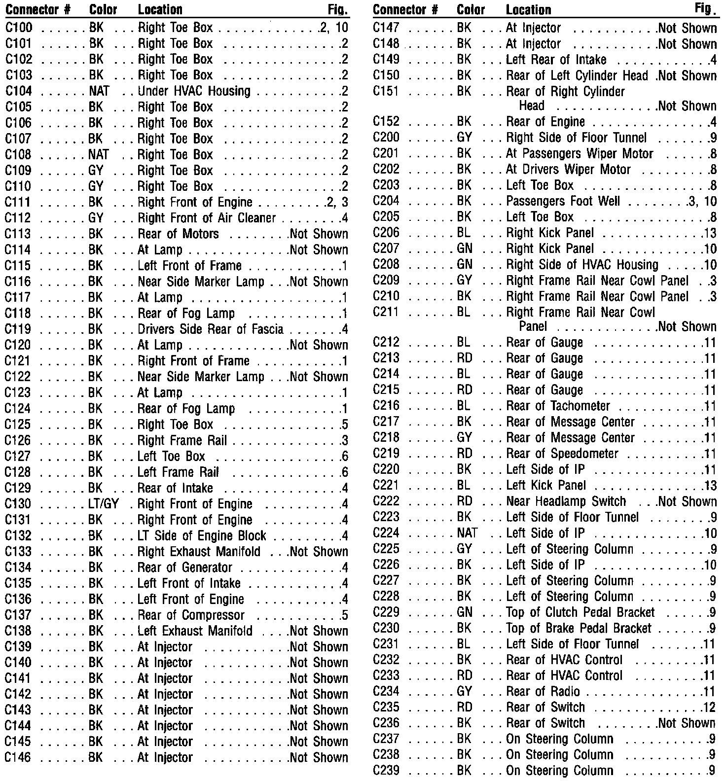 Connector Locations Diagram Index: