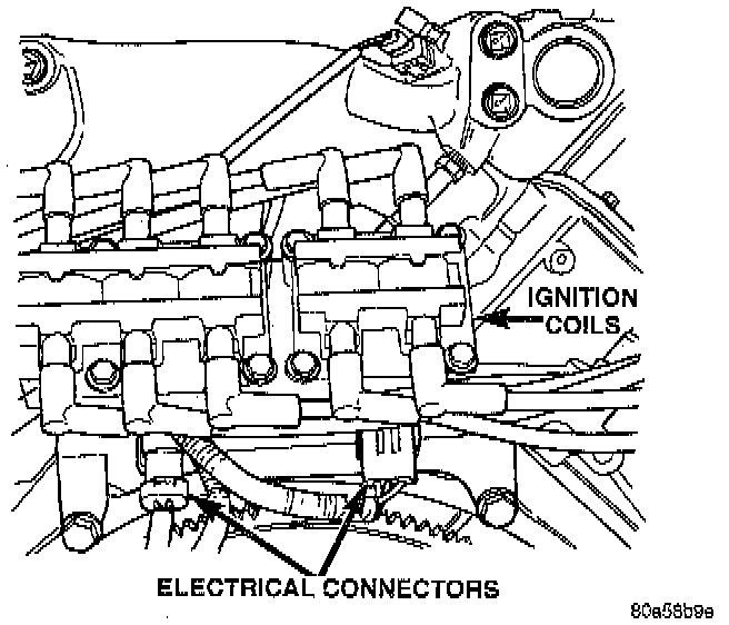9. Connect ignition coils and the two electrical connectors at rear of engine.
