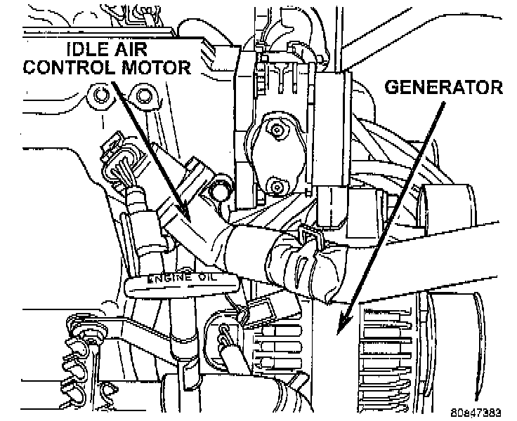 7. Disconnect Idle Air Control (IAC) motor electrical and hose connection.