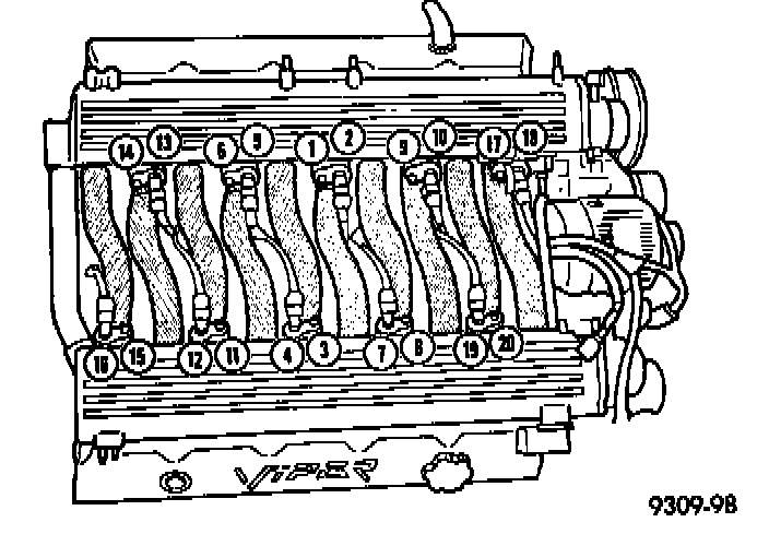 3. Install intake manifold and twenty bolts and torque to 1 Nm (10 in. lbs.). Then torque bolts to 22 Nm(200 in. lbs.) in sequence. After intake manifold is in place, Refer to Exhaust System and Intake Manifold to complete Intake Manifold Assembly.