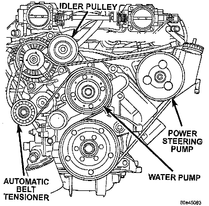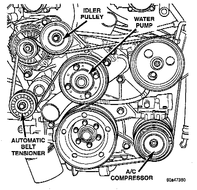 The Poly-V (Serpentine) Drive belt is provided with a dynamic tensioner to maintain proper belt tension. To remove or install this belt.