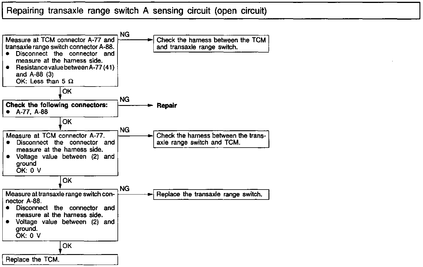 Inspection 1 Transaxle Range Switch A Sensing Open Circuit