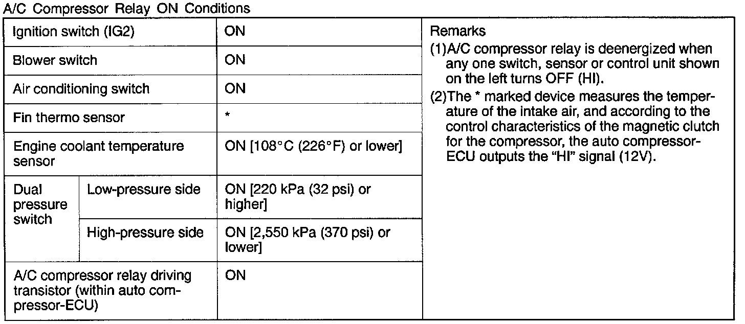 - When these three sensors are all activated, the triple pressure switch (or dual pressure switch) is ON, and the ignition switch, blower switch, and air conditioning switch are ON, the A/C compressor relay is energized.