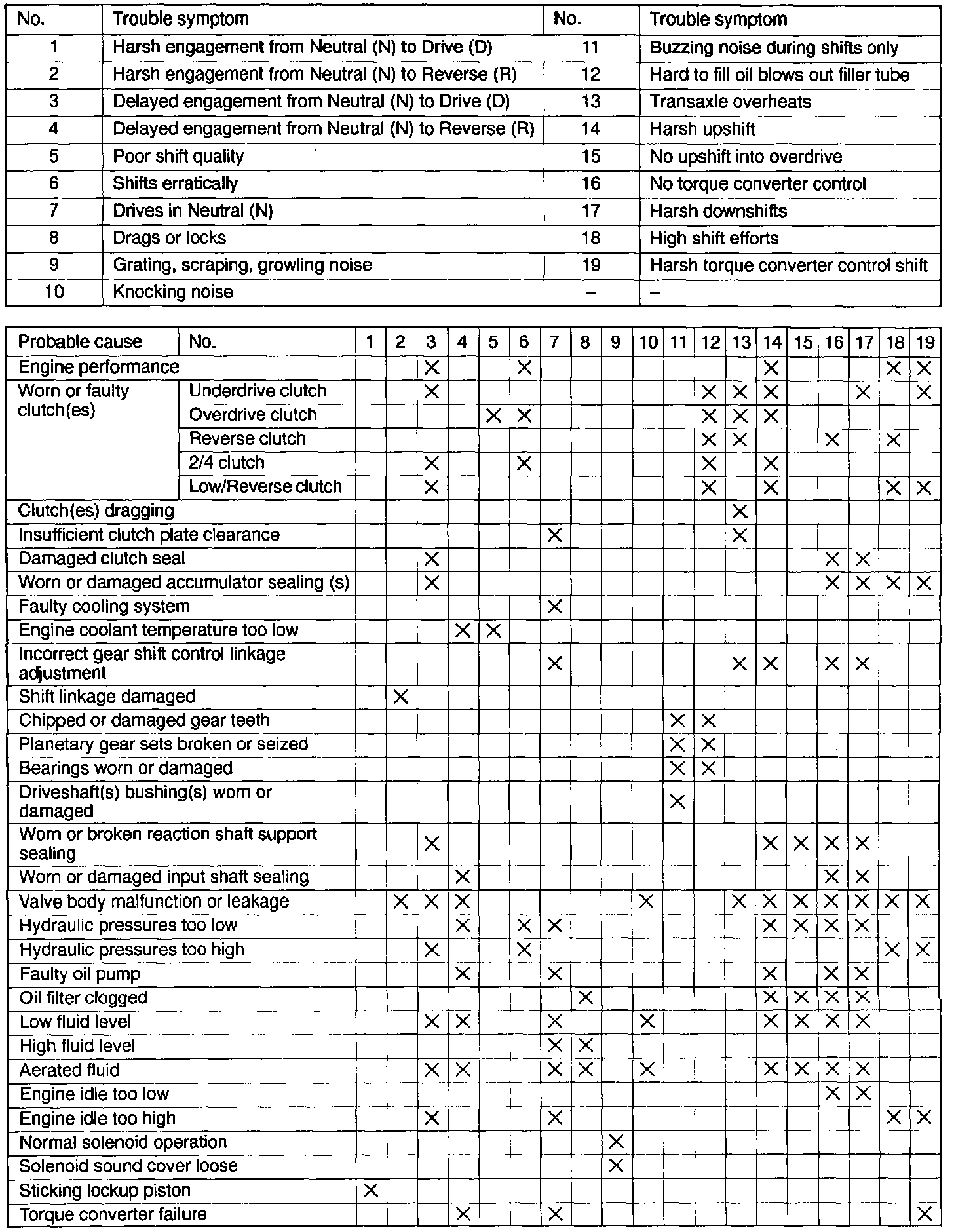 Inspection Matrix For Trouble Symptoms: